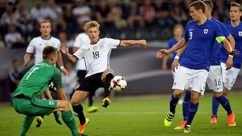 0-1, Французы в ¼. Хозяевам турнира на этой стадии жребий пал играть против сборной Германии. Немецкая дружина довольно скомкано провела групповой этап, получив право играть в плей-офф только в заключительном туре. Да и попала в него с третьего места. Но это не помешала немцам создать ряд опасных моментов у ворот Элиаса Маттилы. Правда, до гола дело так и не дошло.